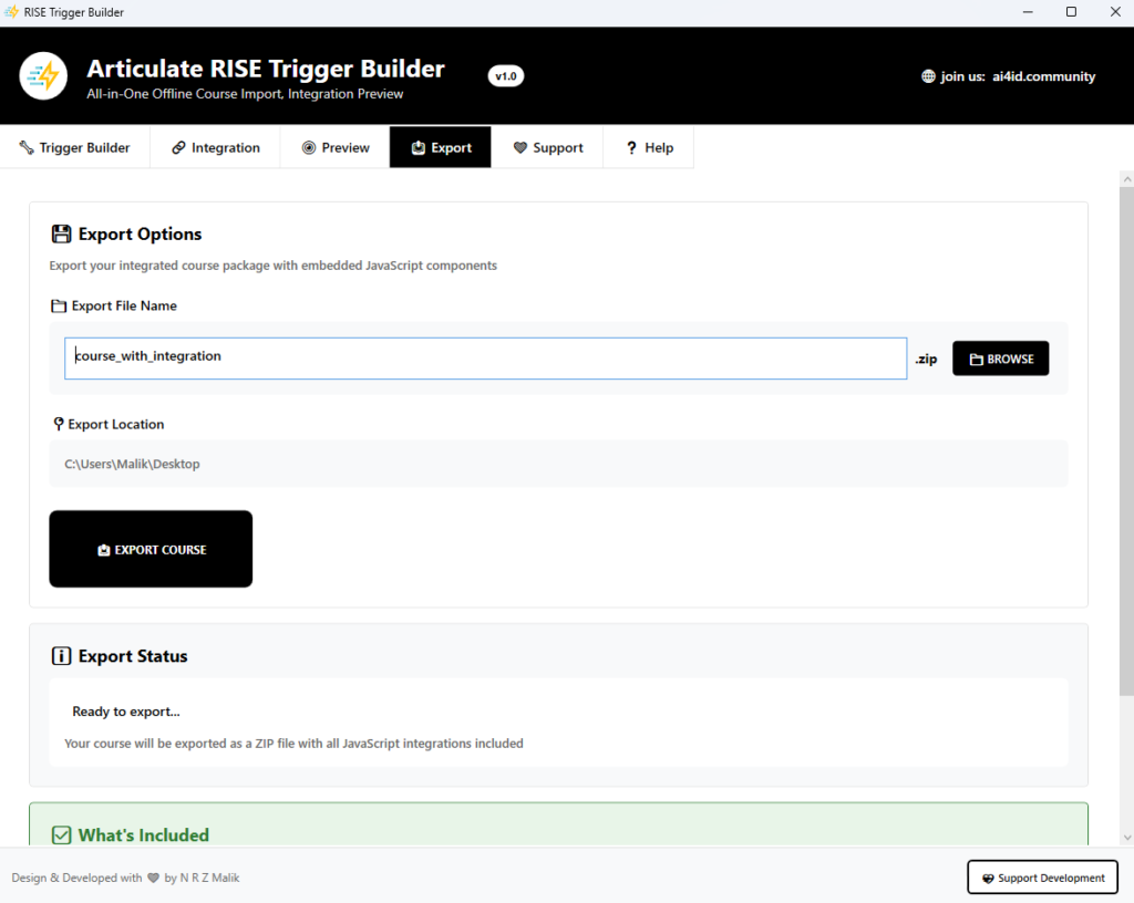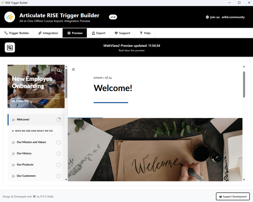 The Rise Trigger Builder is an independent, offline application (with a web version available for Mac users) that empowers you to create, preview, and export custom trigger-based interactions within your Rise courses.